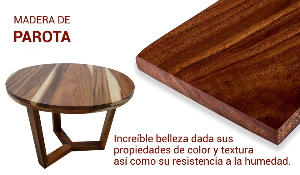 Esta madera es apreciada por su hermoso color marrón dorado, por su amplia disponibilidad y su inigualable bajo costo; además, la parota es más fácil de trabajar y tiene un color y una veta más uniformes, proporcionando una mejor estética en las piezas elaboradas a partir de ella sin mayor esfuerzo.